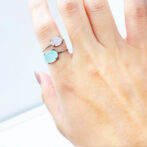 天然石ホワイトカルセドニーのカボションを使用したリングです。 半透明の色合いが美しく、高級感があるお品です。